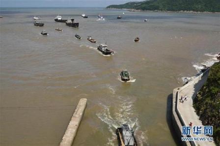 7月8日,海上漁船駛?cè)胝憬_(tái)州市金清大港避風(fēng)(圖片來源:新華網(wǎng))