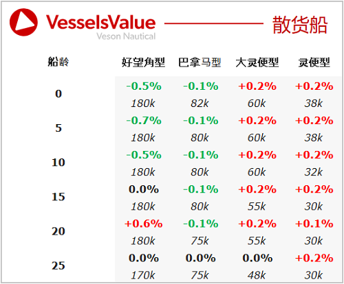 每周全球主流船型二手船交易信息,及VesselsValue(簡(jiǎn)稱VV)售前估值。