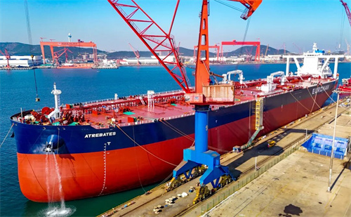 11月10日,中船北海造船在青島西海岸新區(qū)向比利時(shí)船東交付首艘31.9萬噸氨預(yù)留超大型原油船,成為5艘系列訂單中的首制船。