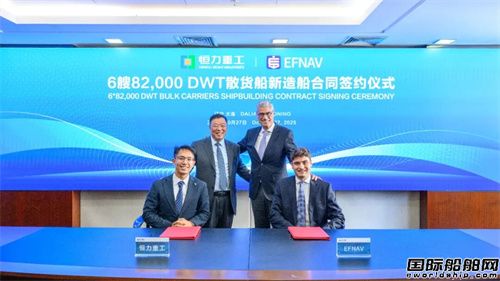 10月27日,恒力重工與希臘知名船東EFNAV成功簽署6艘82000載重噸散貨船建造合同,順利達(dá)成雙方首次合作的同時,延續(xù)了恒力重工前期持續(xù)接單的火熱勢頭。