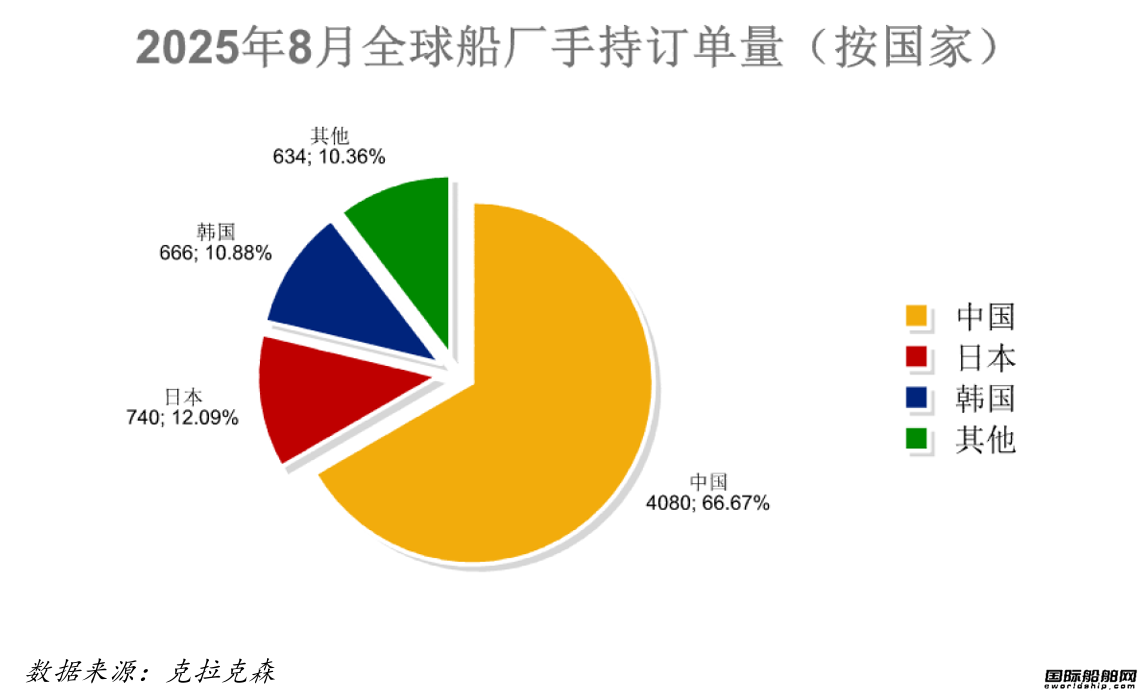 全球手持訂單6120艘,中國船廠4080艘占全球市場份額66.67%
