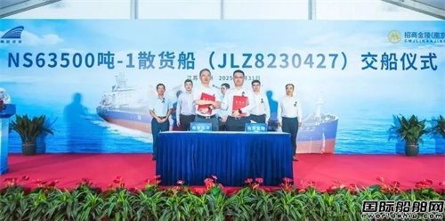 7月31日,招商工業(yè)金陵船廠為南京遠(yuǎn)洋建造的首艘63500噸散貨船“金源門”輪在江蘇儀征舉行交船儀式。該船是為南京遠(yuǎn)洋建造的四艘63500噸散貨船中的第一艘,較合同期提前183天交付。
