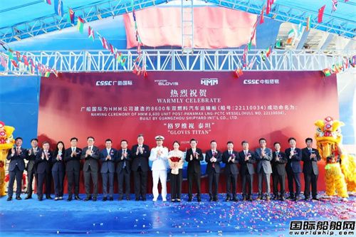 廣船國際為HMM建造8600車汽車運(yùn)輸船首船命名交付