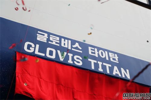 在李圭馥先生、崔元赫先生、周旭輝先生的陪同下,命名嘉賓嚴(yán)恩淑女士將該船命名為“GLOVIS TITAN”號。