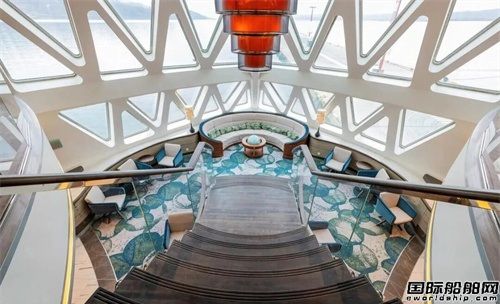 該船內(nèi)裝由Tomas Tillberg Design設(shè)計(jì) ,以明亮通透的現(xiàn)代風(fēng)格為特色,包括獨(dú)特的兩層挑高中庭、利用X-BOW船艏空間設(shè)計(jì)的全景前向休息室、親水的觀景區(qū)域,為乘客提供沉浸式的觀光體驗(yàn)。