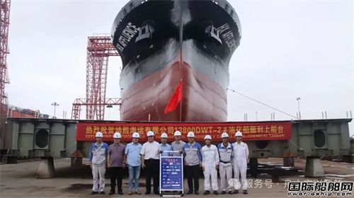 寧興船舶承建13800噸油化船一船下水一船上船臺(tái)