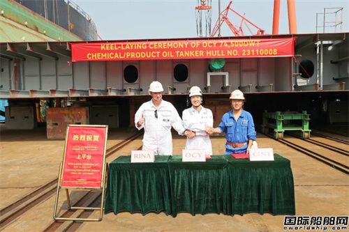 廣船國際為OCY建造74500噸油化船首制船上平臺
