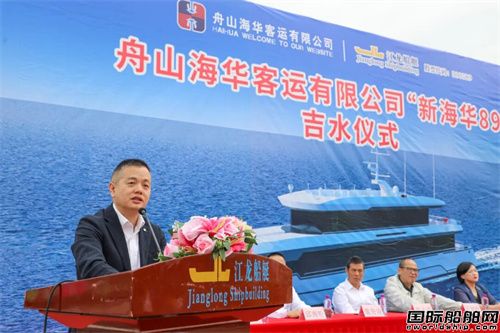 10 月 21 日,江龍船艇(股票代碼:300589)為舟山海華客運有限公司量身打造的38米/80客商務(wù)快艇 “新海華 89” 吉水儀式隆重舉行。