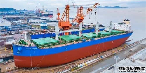 舟山中遠(yuǎn)海運(yùn)重工首制63600噸散貨船上水