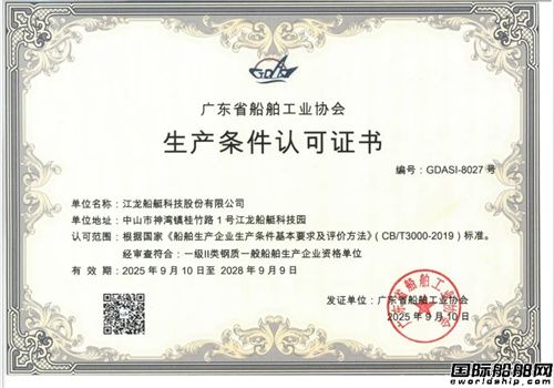 近日,江龍船艇成功通過一級Ⅱ類鋼質(zhì)一般船舶生產(chǎn)企業(yè)評審,并正式獲得由廣東省船舶工業(yè)協(xié)會頒發(fā)的生產(chǎn)條件認(rèn)可證書。此次評審嚴(yán)格依據(jù)新標(biāo)準(zhǔn) CB/T3000-2019 開展,標(biāo)志著江龍船艇在船舶生產(chǎn)制造全鏈條的綜合能力獲得權(quán)威認(rèn)可,進(jìn)一步鞏固了其在行業(yè)內(nèi)的領(lǐng)先地位。