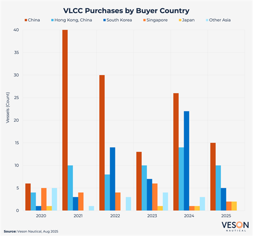 Veson Nautical分析師Felix Tordoff指出:“這些分化的路徑表明,亞洲買家正重塑航運投資規(guī)則。中國買家聚焦老齡VLCC,把握制裁貿(mào)易溢價;韓國采取更審慎的逆周期操作;日本則強調(diào)合規(guī)與靈活性。結(jié)構(gòu)性力量正在超越短期周期,重塑整個油輪市場格局。”