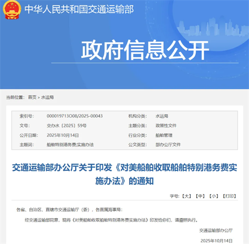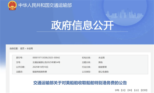 10月14日凌晨,交通運(yùn)輸部辦公廳發(fā)布《對美船舶收取船舶特別港務(wù)費(fèi)實(shí)施辦法》,明確豁免條件,為市場吃下“定心丸”。